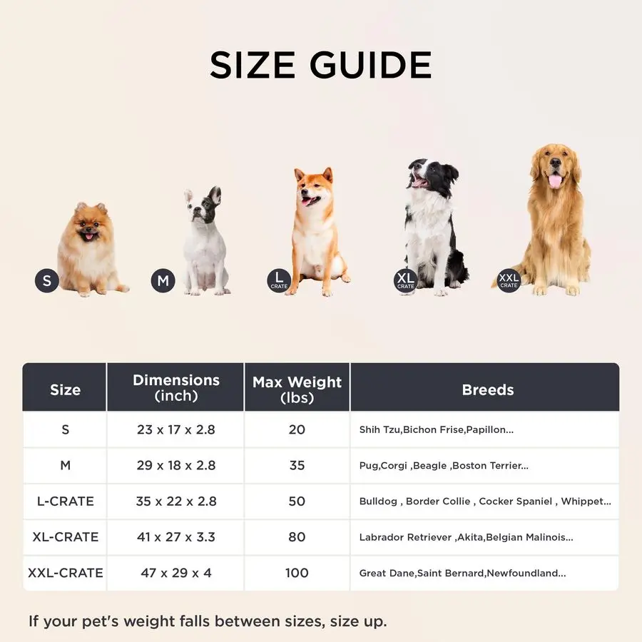 AllPurpose Design Available in multiple sizes to suit any breed or lifestyleperfect for home, travel or outdoor adventures. Before making your purchase, please kindly measure both your dog39s size and the dimensions of your dog crate or refer to size guide image to find the best fitting dog bed