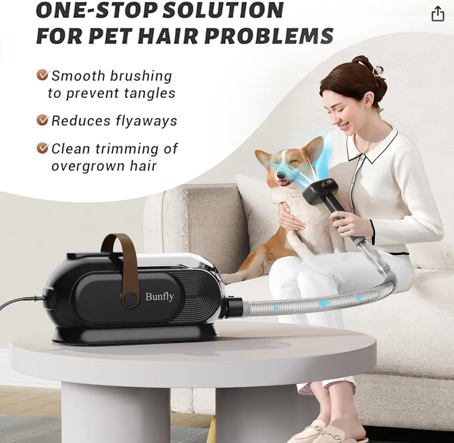 Experience calm, powerful grooming with a 13000 KPa suction pet vacuum that collects shed hair while protecting your companion's hearing.