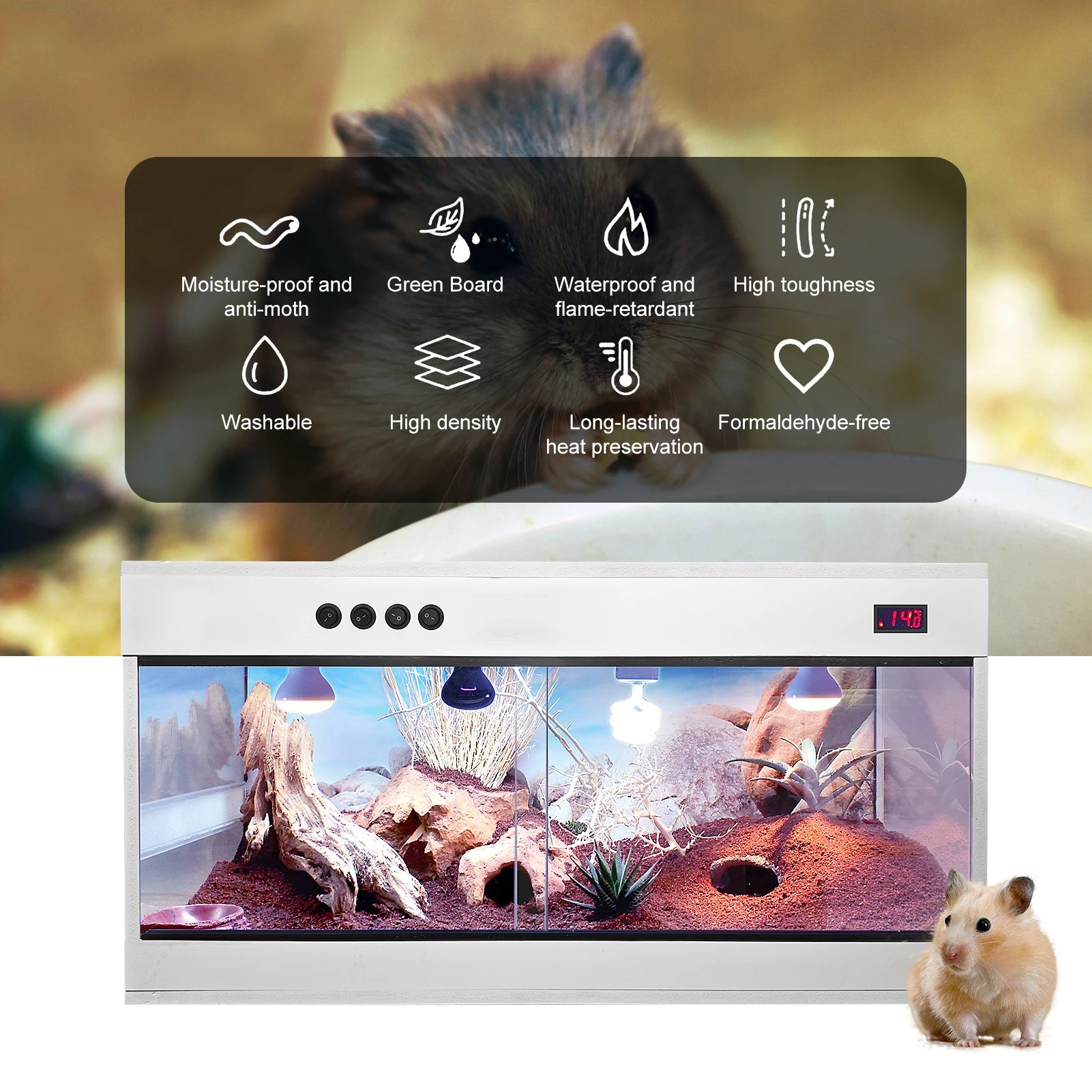 - US-standard 110 V compatibility lets you pair with heat mats, lamps, and humidity controls to maintain a stable microclimate, track temps easily, and create safe basking zones.